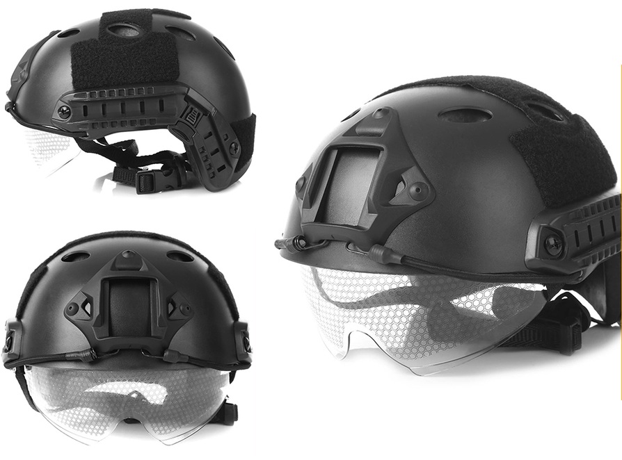 Casco tactico militar exterior CS Airsoft Paintball Base con visera