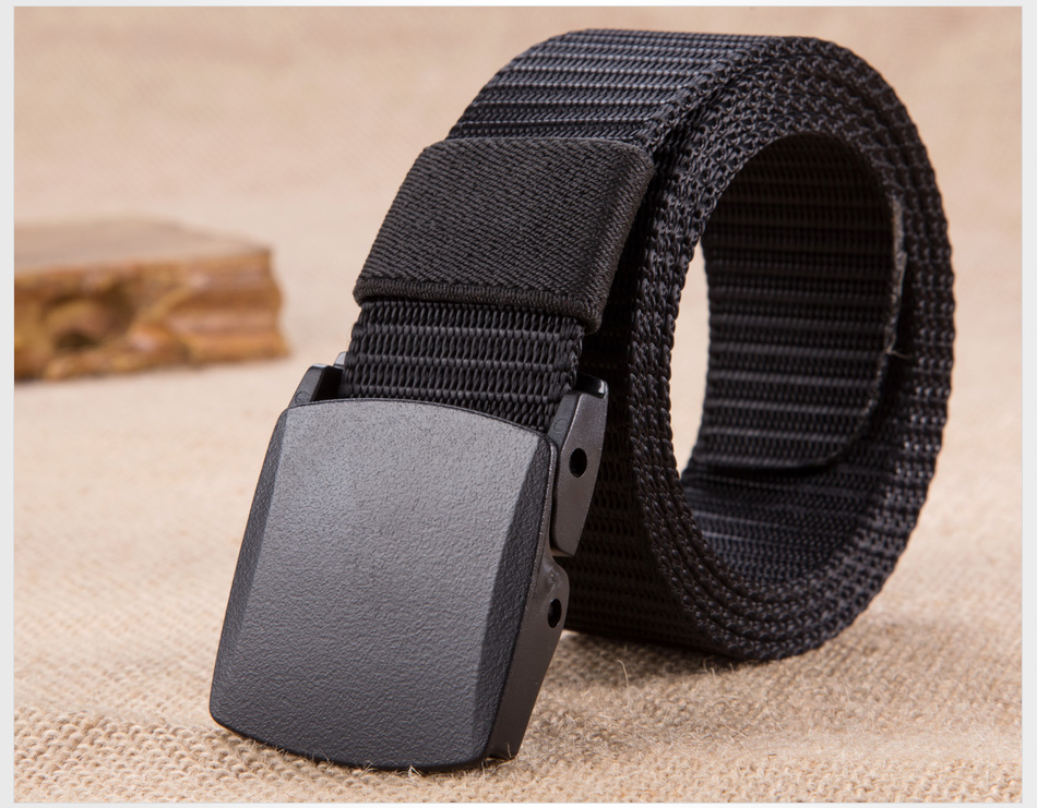 Cinta de nylon de 38 mm x 130 cms de largo color negro y hebilla de plastico cayman