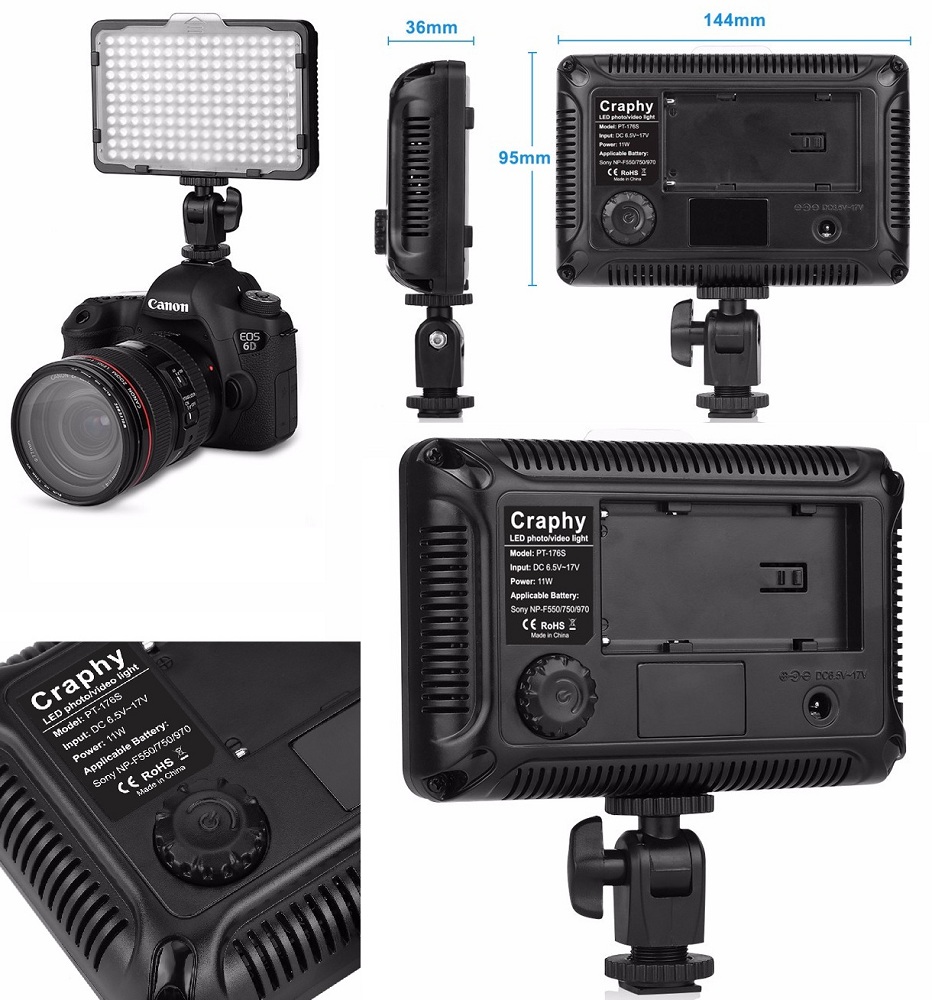 Craphy PT-176S Luz ultracompacta de video LED Panel regulable con dos filtros de color En la cámara Light Pad para Canon para Nikon