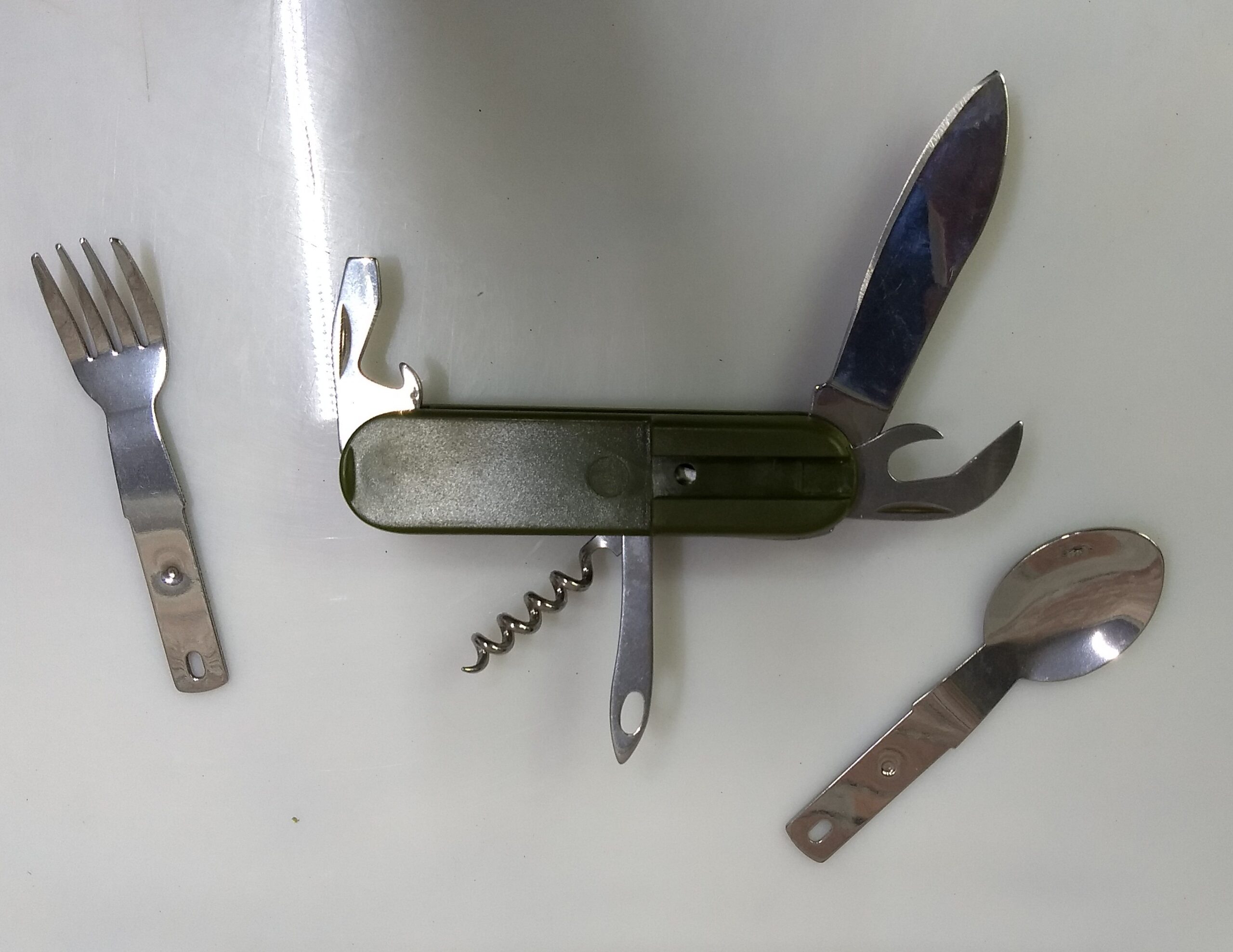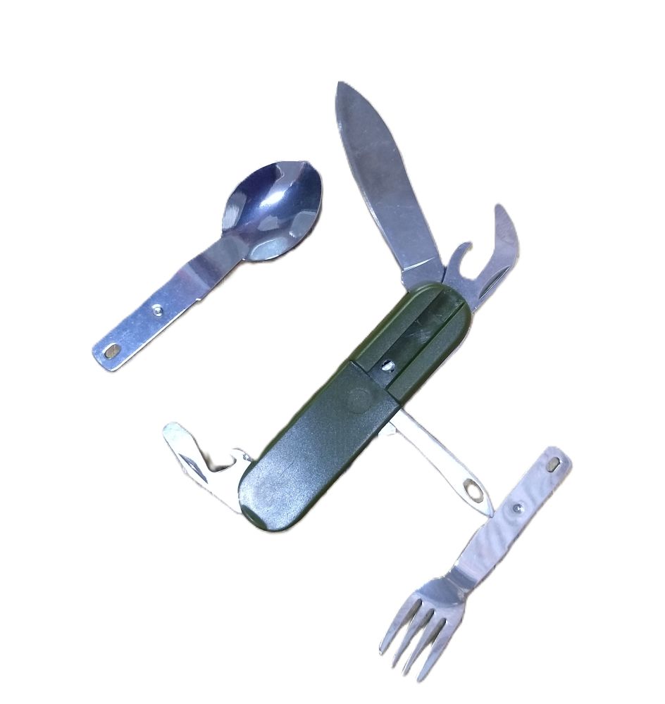 Multi Herramienta con tenedor y cuchara para campamento.