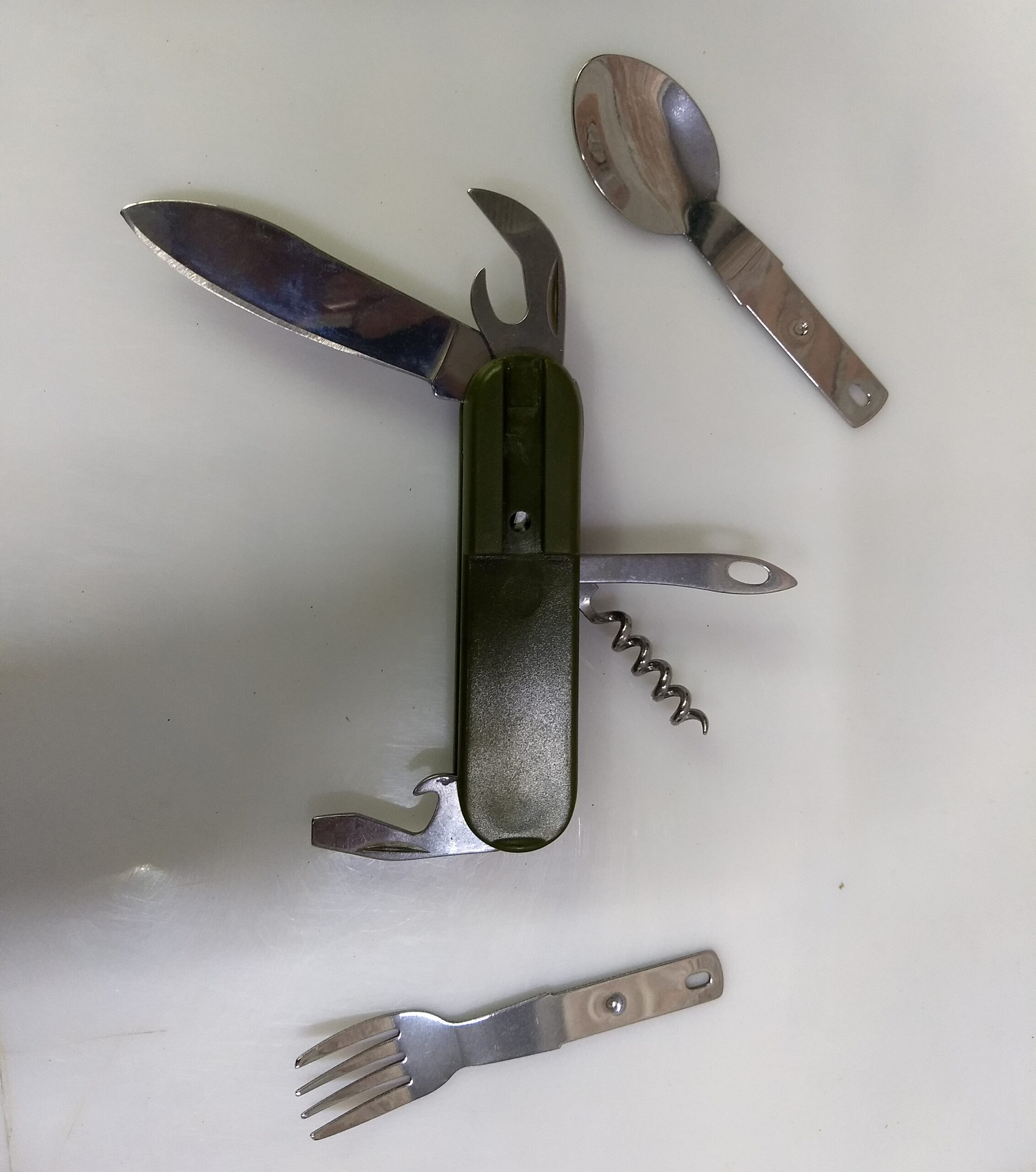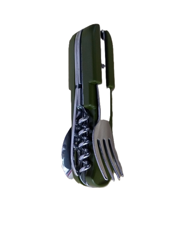 Multi Herramienta con cubiertos y funda campamento Camping F-178 verde