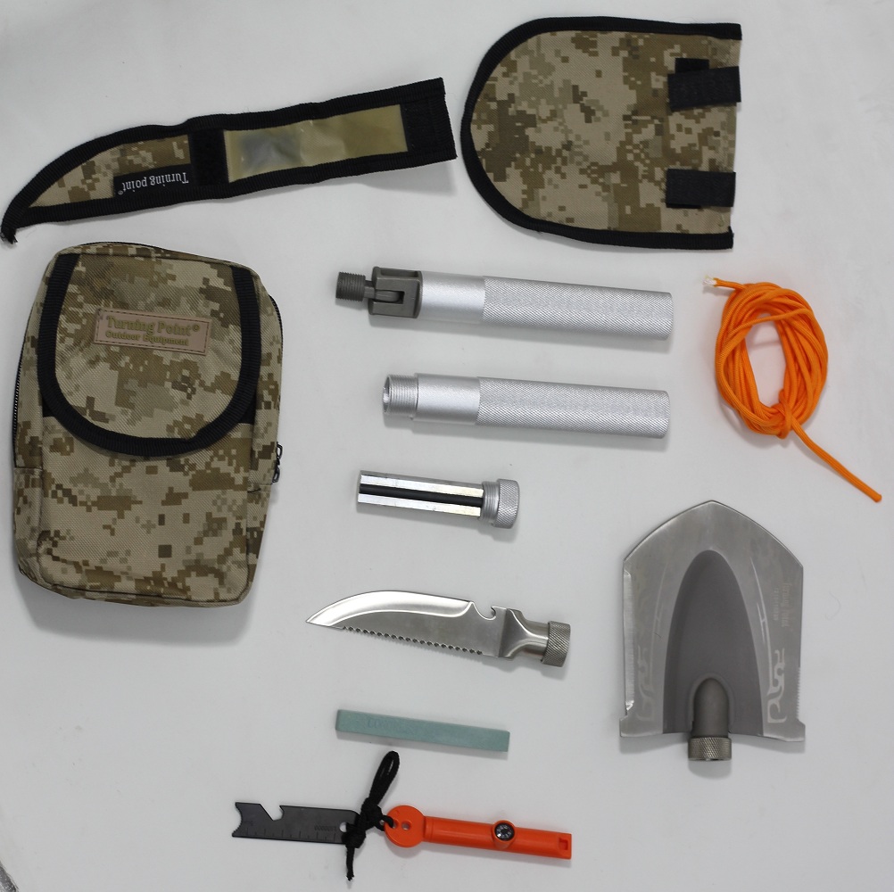 ¿ PALA MULTIFUNCIÓN: esta pala plegable es un kit de camping todo en uno que se puede usar como pala, azada, hacha, sierra, martillo y compás. Destornille el tubo de conexión para usar navaja, silbato de emergencia, abrebotellas, pedernal, rompe vidrios y cabezal de destornillador. Los mangos huecos y los tubos de extensión también almacenan artículos de emergencia. Esta versátil pala militar puede satisfacer todas sus necesidades al aire libre.