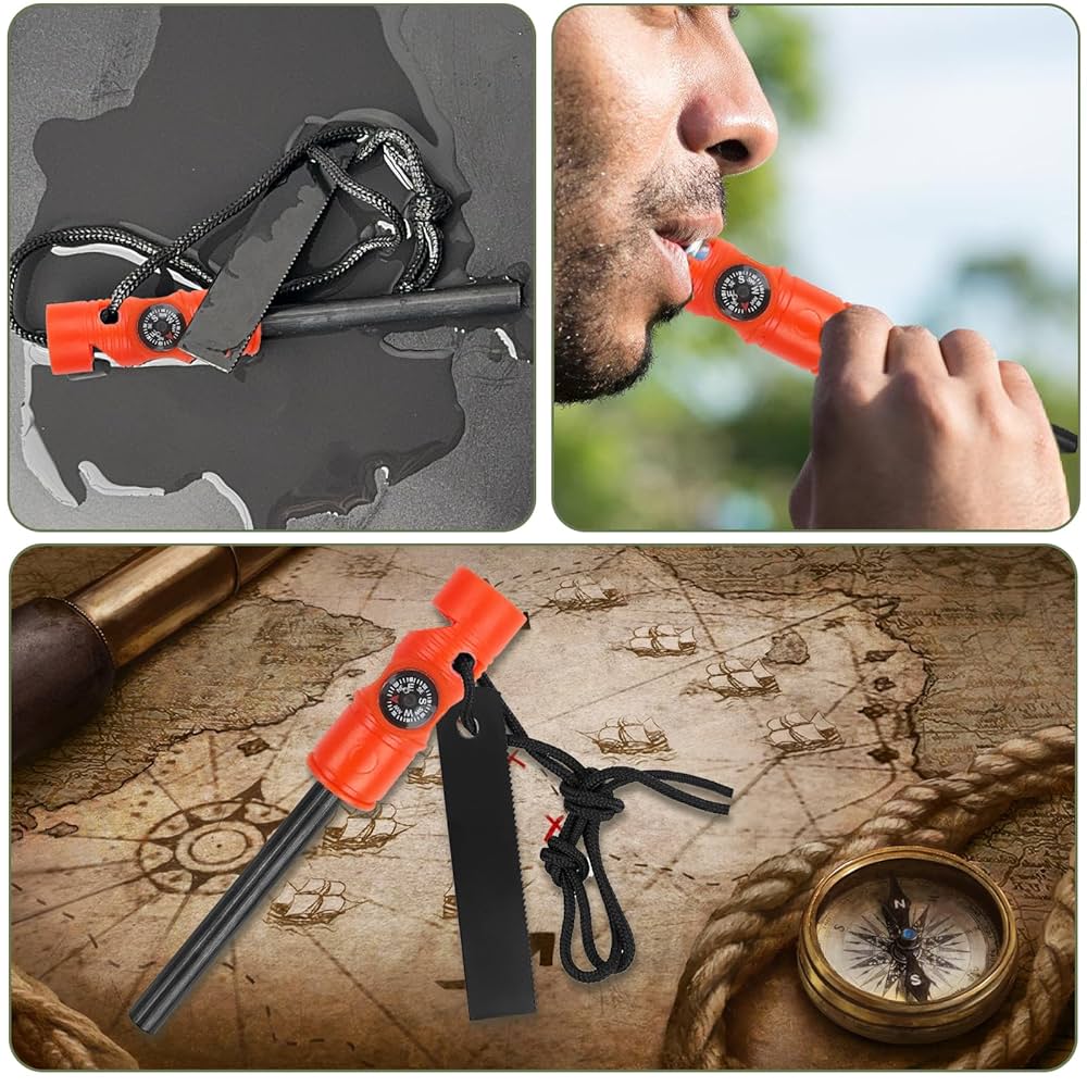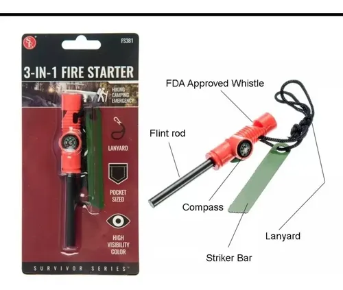 Pedernal multiherramienta supervivencia silbato brujula regla iniciador F-109